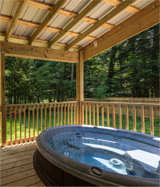 A Modern woodland retreat with a private sauna, hot tub, and streamside serenity.